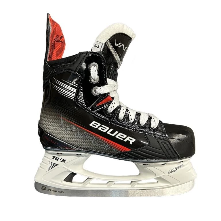 Der BAUER Vapor Select Jr basiert auf dem Vapor X3 Modell. Ein Highlight des Kinder-Skates ist die Digi Comp Außensohle, die für eine verbesserte Kraftübertragung und Stabilität sorgt. Die Standard Schnürung ermöglicht eine individuelle Anpassung und eine optimale Passform, während die 40oz Zunge mit HD Schaum für zusätzlichen Komfort und Schutz sorgt. Der TUUK Edge Holder und die Edelstahlkufe bieten eine hervorragende Traktion und Langlebigkeit, während das sublimierte Innenmaterial für eine angenehme Passform und ein sportliches Design sorgt.