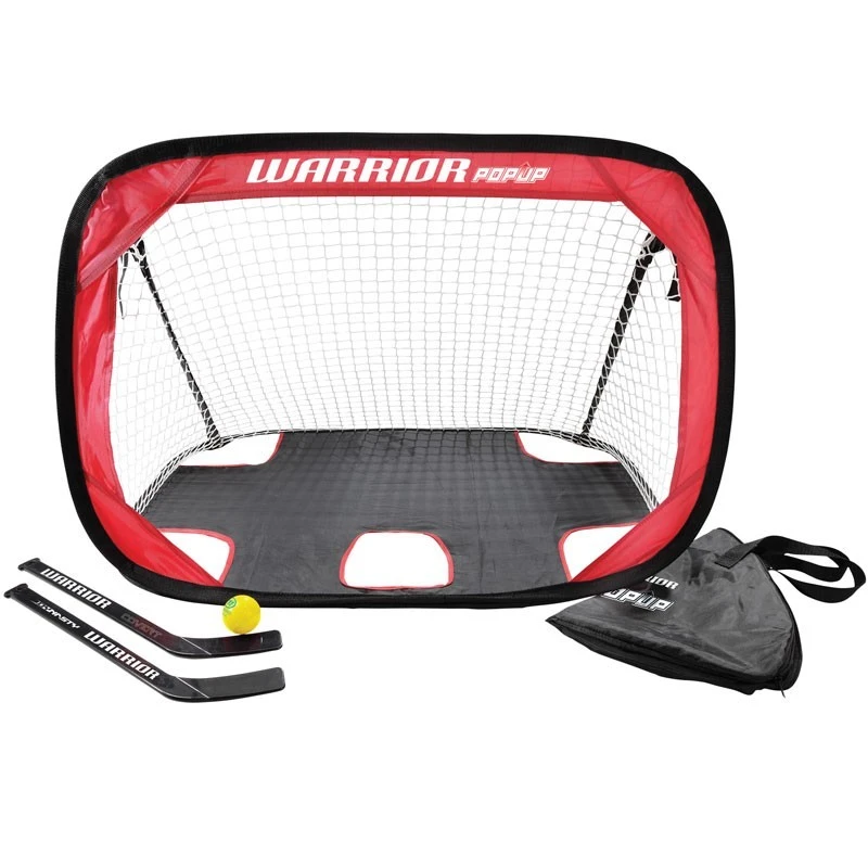 Kit Includes: 1 PopUp Net, 4 collapsible supports, 2 Plastic Mini Sticks, 1 Warrior Speed Ball, Carry bag